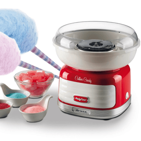 Ретро-дизајниран електричен уред за подготовка на шеќерна волна • Моќност: 450 W • Подготовка на шеќерна волна со бонбони со кристален шеќер или бонбони со различни вкусови • Лесна за одржување и расклопување • Опрема: шишарки за намотување и чаша за дозирање • Лесна за употреба и чистење • Работи со кристален шеќер или коктел бонбони • Шишарки вклучени