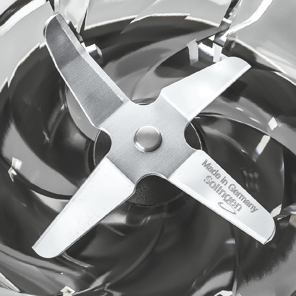 • MMB6141B e блендер од 1200 W –со 30.000 вртежи во минута • Sistem Pro-Performance: за оптимална текстура на густи пијалоци, дури и кога се направени од замрзнато овошје или цврсти состојки • Ножеви ProEdge со систем EasyKlick: совршени резултати и лесно чистење благодарение на ножеви од не’рѓосувачки челик произведени во Германија • Бокал ThermoSafe со забрзувачи на проток и употреблив волумен од 1,5 литри • Благодарение на пластичните делови “BPA-free” храната секогаш ќе Ви биде здрава и безбедна • Моќен мотор: 1200 W, 30.000 вртежи во минута • Висококвалитетни сечила од не’рѓосувачки челик ProEdge произведени во Солинген, Германија • Две поставки за брзина и пулсна функција • Pulse funkcija: работи како пулс • Мерица на садот (максимум 1500 ml) • Лесно се чисти: деловите што може да се мијат во машината за садови (капак, додаток за притискање) • Сите пластични делови што се во контакт со храна се “BPA-free”
