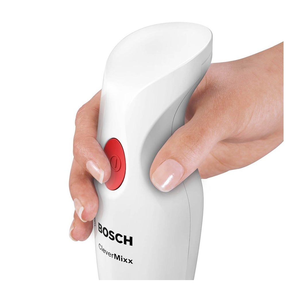 • Боја: бела • Моќност на моторот (max): 400 W • Има ниско ниво на бучавост,лесен и брз • CleverMixx лежи совршено на рака и го прави лесно и едноставно ракувањето • Пластиката која е во контакт со храната не содржи бисфенол A (BPA free) • Повеќе наменска употреба • Иновативен остар QuattroBlade нож,дава совршени резултати на пасирање, мешање,сецкање • Безбедносно заклучување • Број на брзини за лесно ракување: 1 • Дроби и мраз