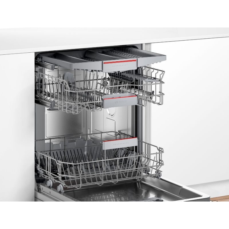 • Функција ExtraDry: опција за темелно сушење на садови кои тешко се сушат • VarioFlex и VarioDrawer корпи • Функција „Омилено“: персонализирана функција која се активира со едноставен допир • Дисплеј од 7 делови • AquaStop: 100% гаранција на оштетувања настанати од вода до крајот на животниот век • Енергетска класа: E • Потрошувачка енергија / вода: 94 kWh / 9.5 l • Капацитет: 13 комплети • Бучност: 46 dB(A) re 1 pW • Бр. на програми – 6: Eco 50 °C, Auto 45-65 °C, Интензивно 70 °C, 1h 65 °C, Тивок програм 50 °C, Favourite • Бр. посебни функции – 3: Extra Dry, Half Load, SpeedPerfectPlus • AquaSensor, сензор за полнење • Асистент за дозирање • EcoSilence Drive инвертер мотор • Автоматско препознавање на средства за чистење • Филтер систем за самочистење со трослоен брановиден систем на филтрација • Rackmatic – горната корпа се подесува по висина (тростепена) • Одложен старт: 1 – 24 h • Димензии (VxŠxD): 81.5 x 59.8 x 57.3 cm