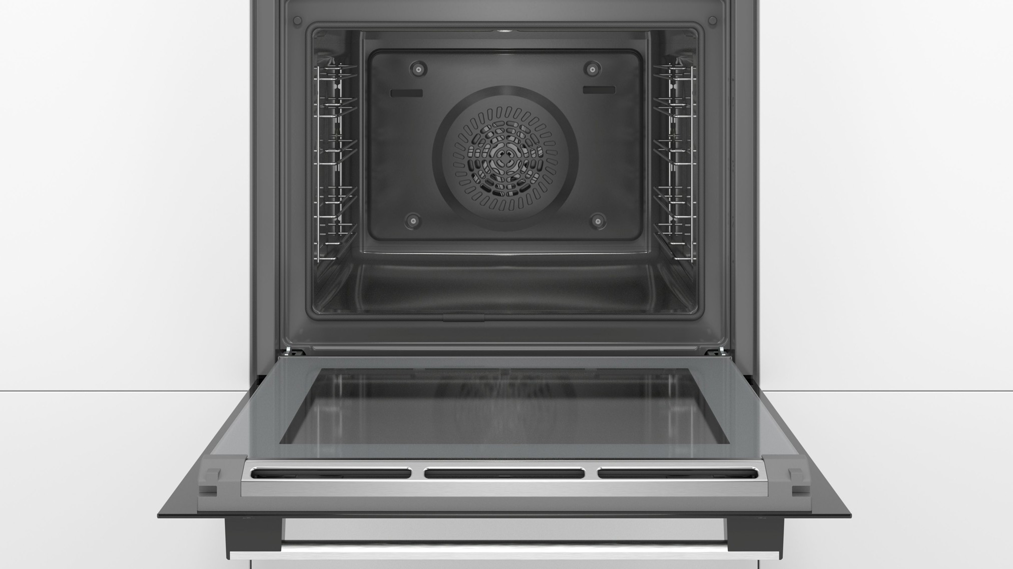 • Вградна фурна 60 cm • Пирулиза – автоматско чистење • 71 L волумен • A енергетска класа • AutoPilot10 фабрички програми за разни видови печење • 3D HotAir: еднакво распоредување на топлината • LED управување на допир • 5 начини на печење: 3D вруќ воздух, горно/долно печење, вентилаторски инфра роштиљ, скара на голема површина • Температура: 50 до 275 степени • 5 различни висини на решетката • Решетка, универзален пекач • Димензии (VxŠxD mm): 595x594x548 mm