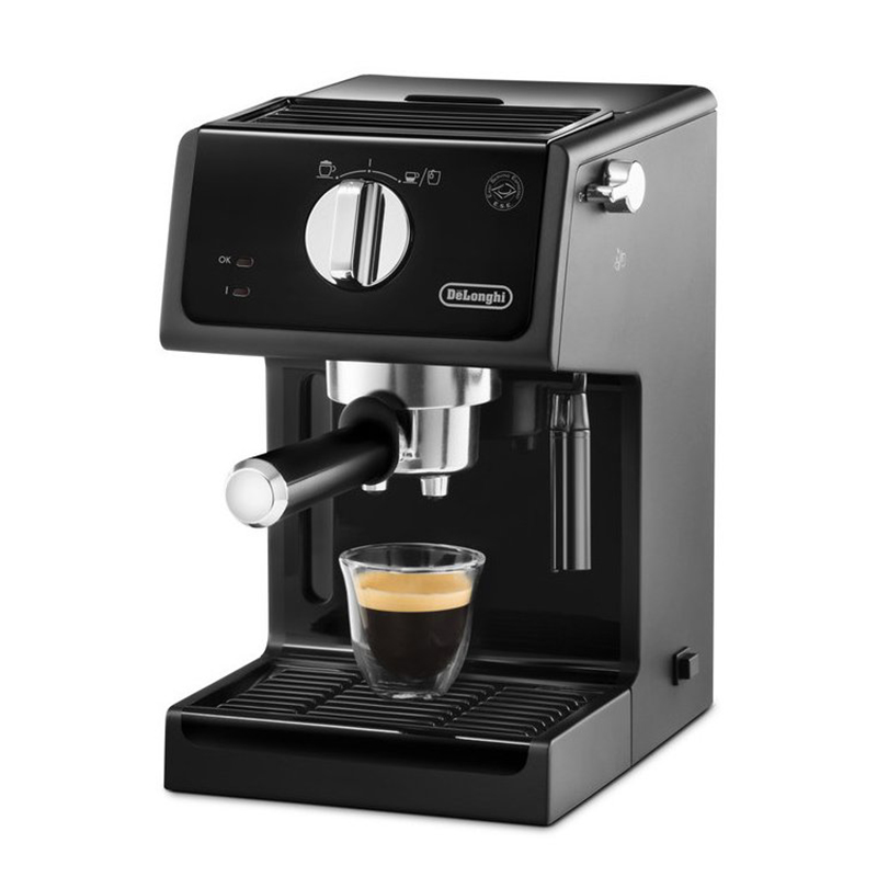 Греач на водата од Inox Пумпа со притисок 15Bar Греач за чаши Автоматско гаснење Држач за меленото кафе со филтер за 1 или 2 шољи кафе Систем за капучино: меша пареа, воздух и млеко Одвоени термостати за пареа и за еспресо Подесувачко испуштање на пареата Прекинувач со индикаторска сијаличка Одвоив прозирен резервоар за вода (1.1 л) со индикатор на нивото Одвоива посуда за капење Висина на чаша 9 см Држач за чаши Број на филтри 3 Easy serving espresso, можност да работи и со готови тампони кафе и со мелено кафе Тежина 4,1 кг Приклучна сила: 1100 W Боја црна Димензии 185x240x305 мм