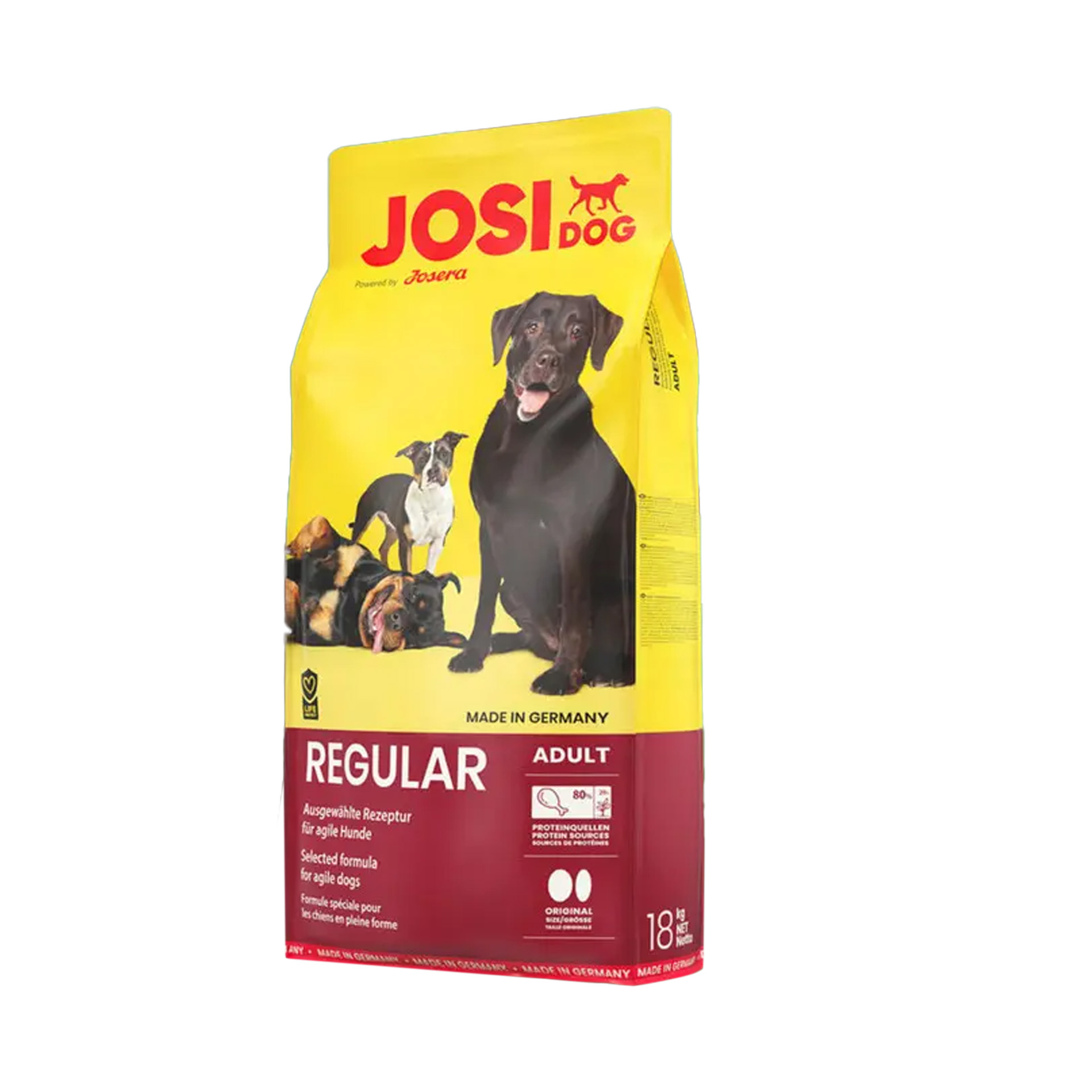 Состав: пченка од цело зрно, сушен протеин од живина, маснотии од живина, влакна од цвекло, оброци од месо и коски, хидролизиран животински протеин, минерали, мелен корен од цикорија (природен извор на инулин), сушен протеин од школки со зелени усни на Нов Зеланд (Perna canaliculus ) Аналитички состав: протеини 25,0 %, содржина на маснотии 15,0 %, сурови влакна 2,6 %, сурова пепел 8,0 %, калциум 2,10 %, фосфор 1,20 % , натриум 0,45 %