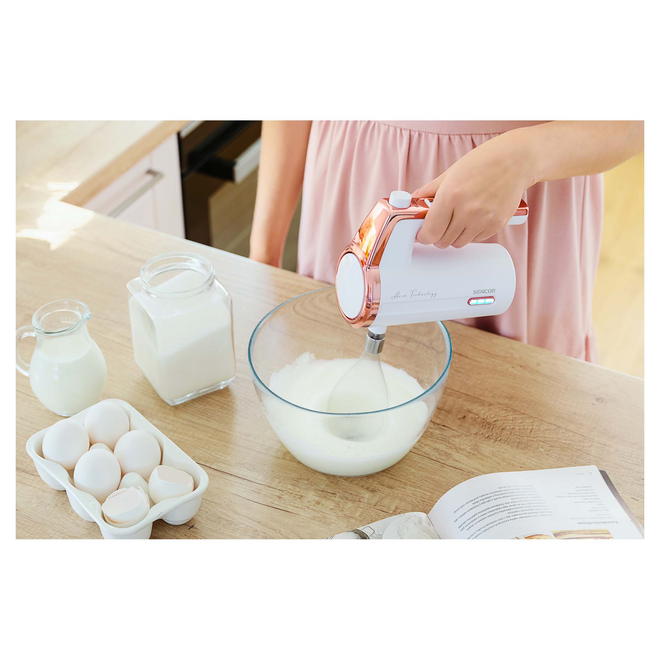 – Безжичен миксер со високи перформанси, работа на вградена батерија – Лесен за користење кога и да ви затреба – 3 брзини – 2 хромирани маталки