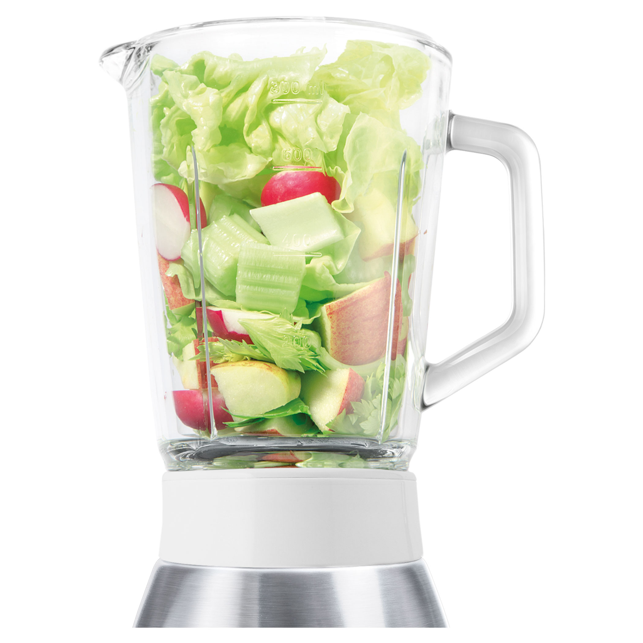– Стаклен сад со капацитет од 0.8 l – Моќност: 250 W – 2 брзини