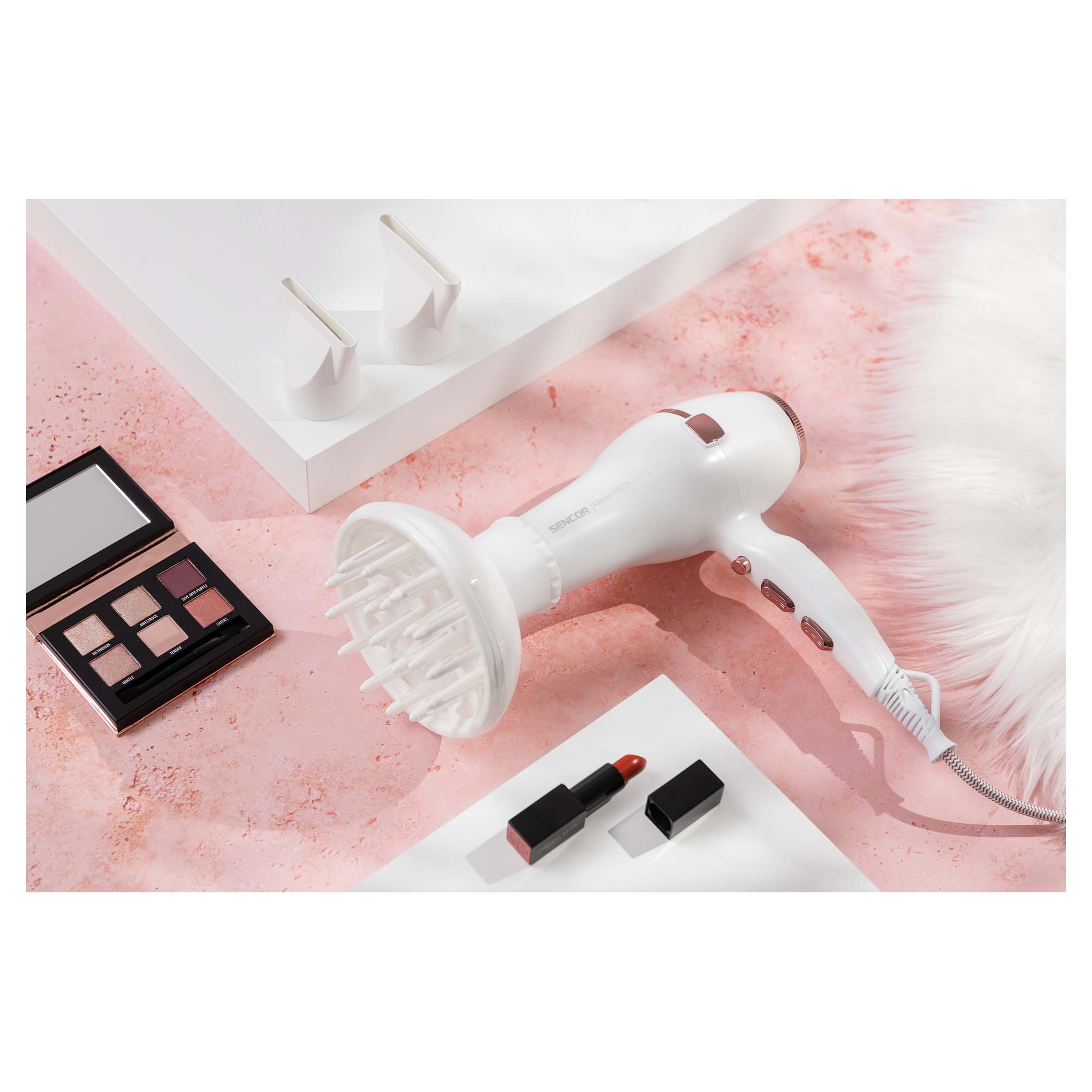 – Професионален мотор – Keratin Protect за посвилена коса – 3 Температури – 2 Брзини