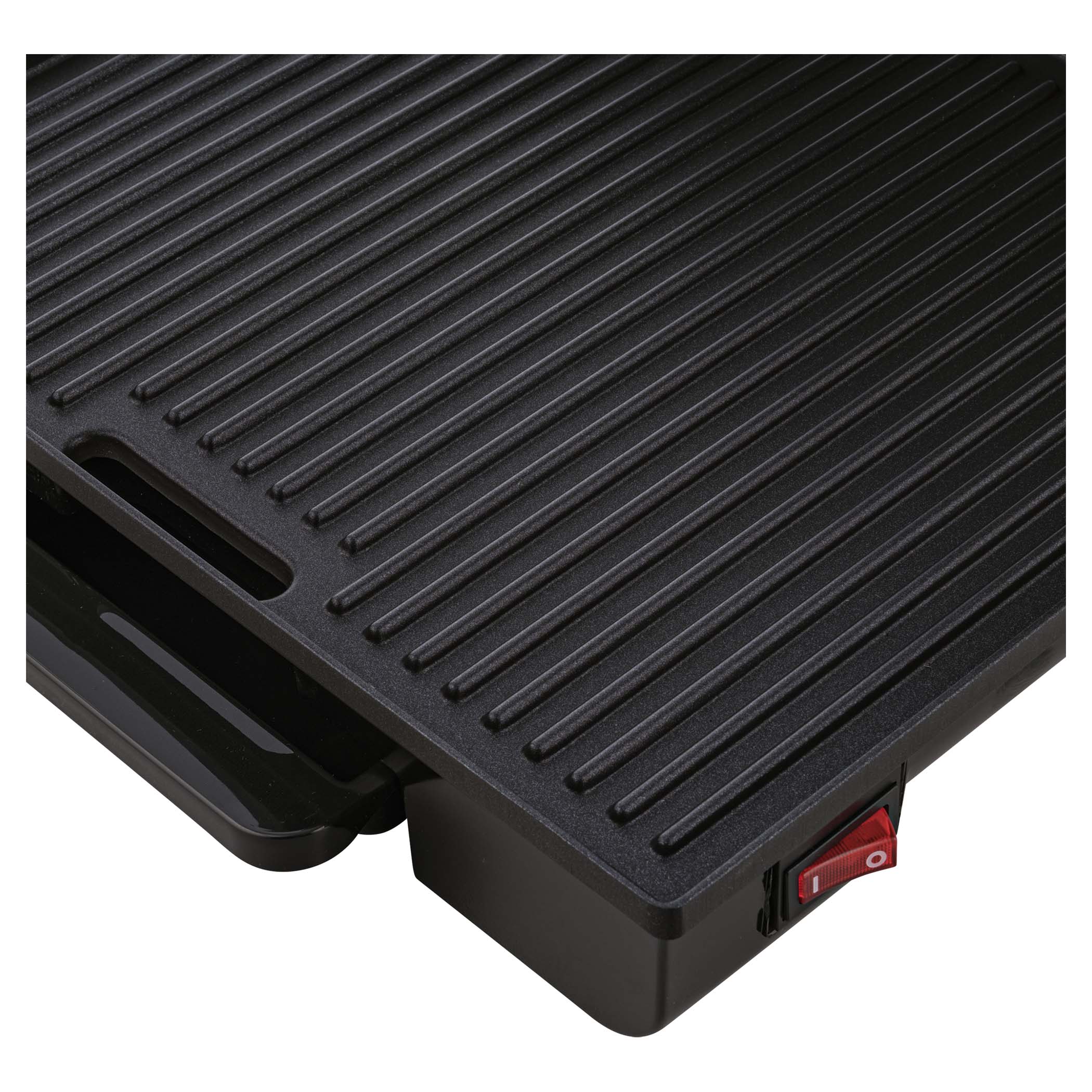 – Нелепливи плочи со ребра – CoolTouch површина, термички изолирана рачка – Контрола на температура, 3 нивоа – Дизајнирана за месо, колбаси, печурки, риба, пецива и сендвичи