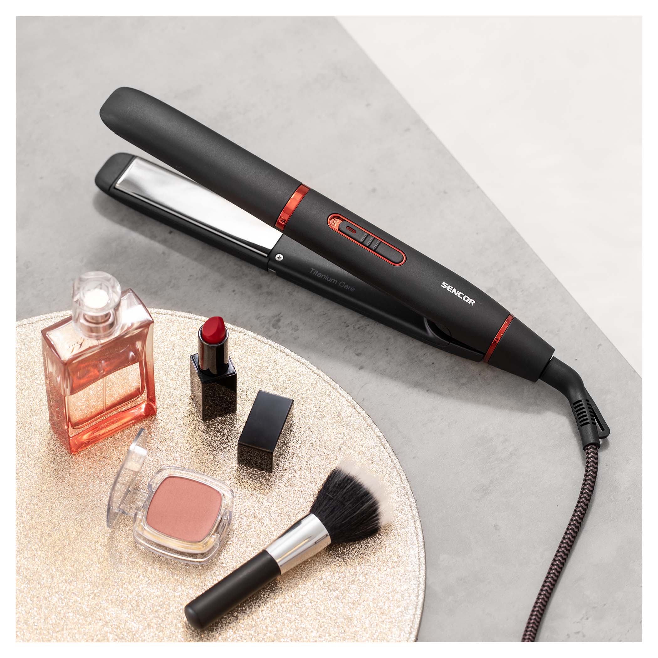 – Брзо загревање – Титаниумска подлога на металните плочки за пеглање – Тенок дизајн – Две температури: 180 and 200 ° C
