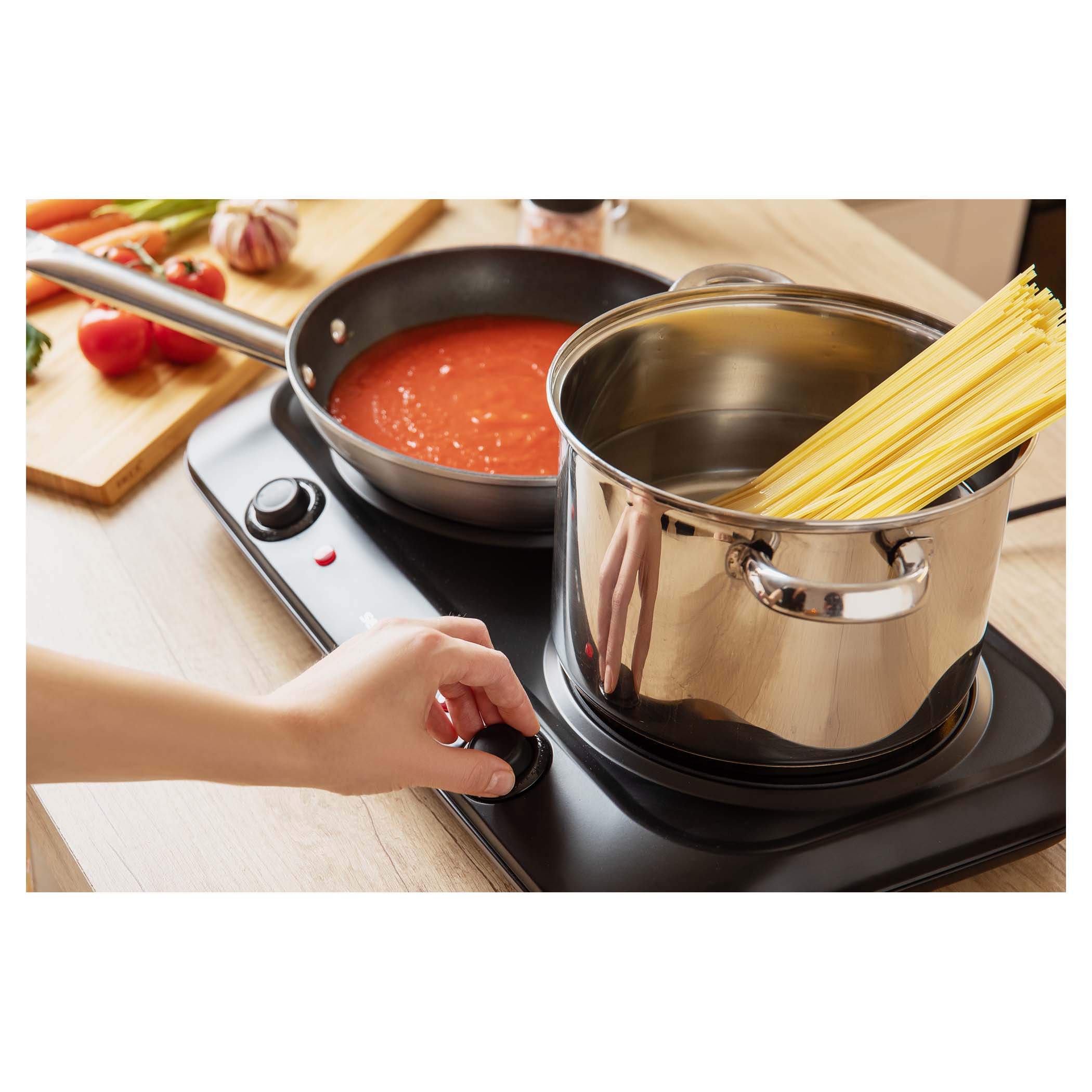 – 2 стаклокерамички плочи со дијаметар од 19 cm – Моќност: 2,400 W (2× 1,200 W) – Лесно за одржување и чистење благодарејќи на мазната површина – Лесен за контрола