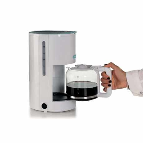 Капацитет: 12 чаши Вклучување/Исклучување со индикаторско светло Декорација од нерѓосувачки челик Индикатор за ниво на вода Нелеплива плоча за одржување на топлината Перлив филтер и филтер држач Вклучува постојан филтер и лажичка Уред за спречување на капење Гледен сјајно и мат завршеток