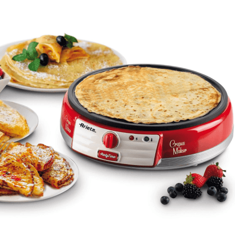 • Аппарат за палачинки • Моќност: 1000 W • Нелеплива плоча Електричен апарат за палачинки со ретро дизајн за лесна и едноставна употреба • Моќност: 1000 W • Показно светло кога уредот е подготвен за употреба • Термостат за прилагодување на јачината на печење • Нелеплива плоча со дијаметар од 30 cm • Две дрвени шпатули