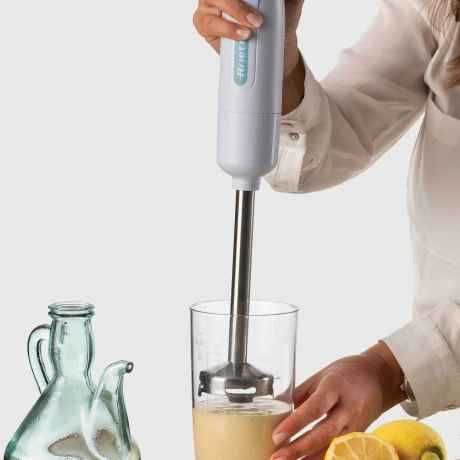 Создавајте вкусно смути секој ден со Рачниот Блендер 3 во 1, блендерот кој гарантира моќност, перформанси и прецизно мешање. Не добивате само уред кој блендира, туку и кој мати и сецка. Моќниот мотор од 700 W ви дава можност да создадете мазни и вкусни супи, смути и сосови за целото семејство, дури и за најмалите. Со избирање помеѓу 2-те брзини и благодарение на сечилото од нерѓосувачки челик можете да добиете резултати без остаток. Сите состојки можете да ги измешате во соодветно проѕирно стакло.