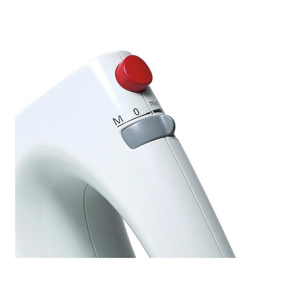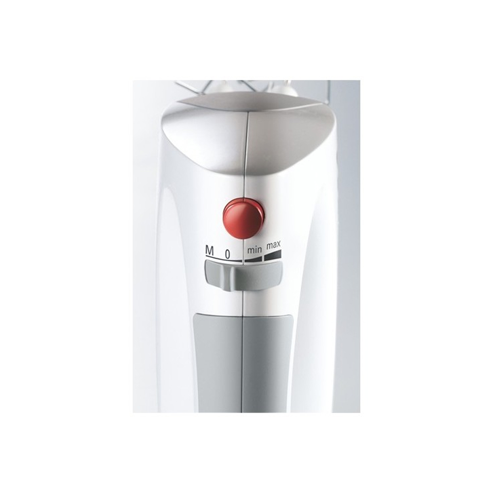 • Боја: бела/светло сива • 2 работни брзини • Ергономски облик на куќиште со soft touch рачка • Одвојена типка за исфрлање на додатокот • Намотување на кабелот на апаратот • Прикладен за леваци • 2 турбо маталки за мешање • 2 стабилни маталки за месење • Приклучна сила: 300 W • Димензии: 100x230x160 mm