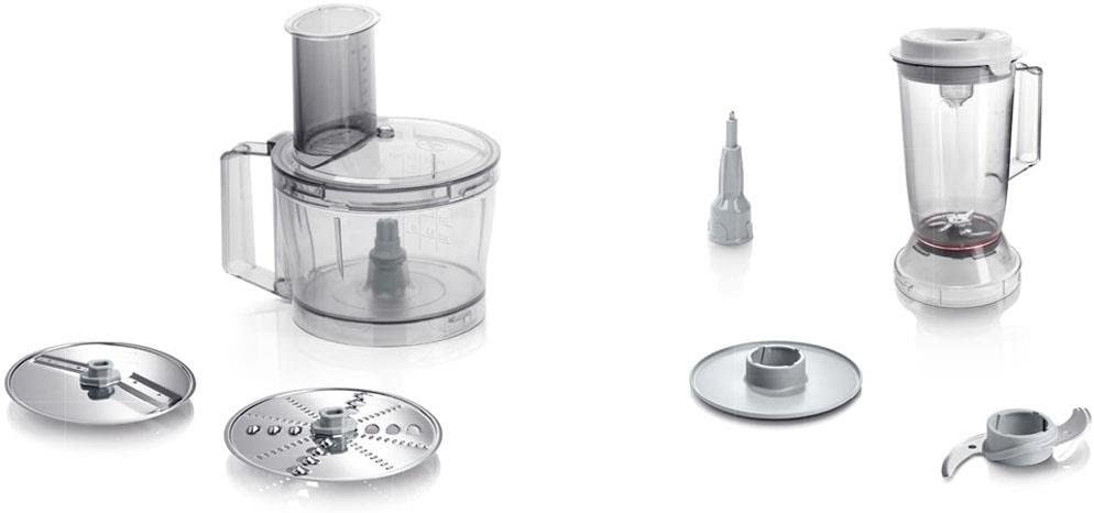 • MultiTalent 3 Кујнски робот со 30 функции и додаток Блендер • Модел 2016 • бело сива боја • 800W мотор • 2 брзини + пулс функција • можност за правење smoothie • Два диска за нарежување • нож од нерѓосувачки челик • Пластичен сад без BPA со 2.3л капацитет за течност и 500гр брашно + состојци (0.8кг тесто) • 1л капацитет на блендер • можност за дробење мраз • Маталка за крем и белки