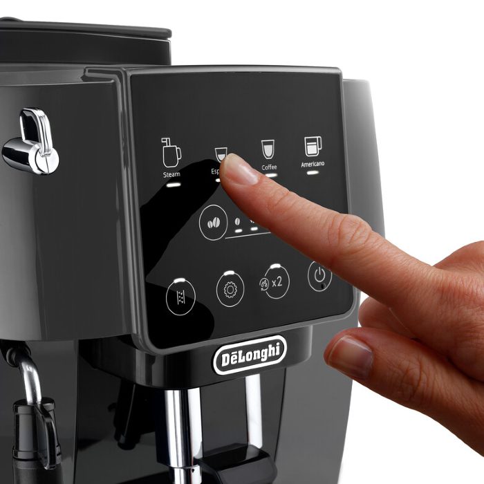 Тип на апарат – автоматски Дисплеј Моќност 1450 W Капацитет на канистер за вода 1,8 l Притисок 15 bar Користи мелено кафе и во зрна Интегрирана мелница со 13 поставки за крупност на кафето Капацитет за зрна кафе 250 g Поставки за арома Можност за припрема на две шољи кафе истовремено Црна боја Димензии (ŠxVxD) 35 x 24 x 44 cm Тежина 8,8 kg