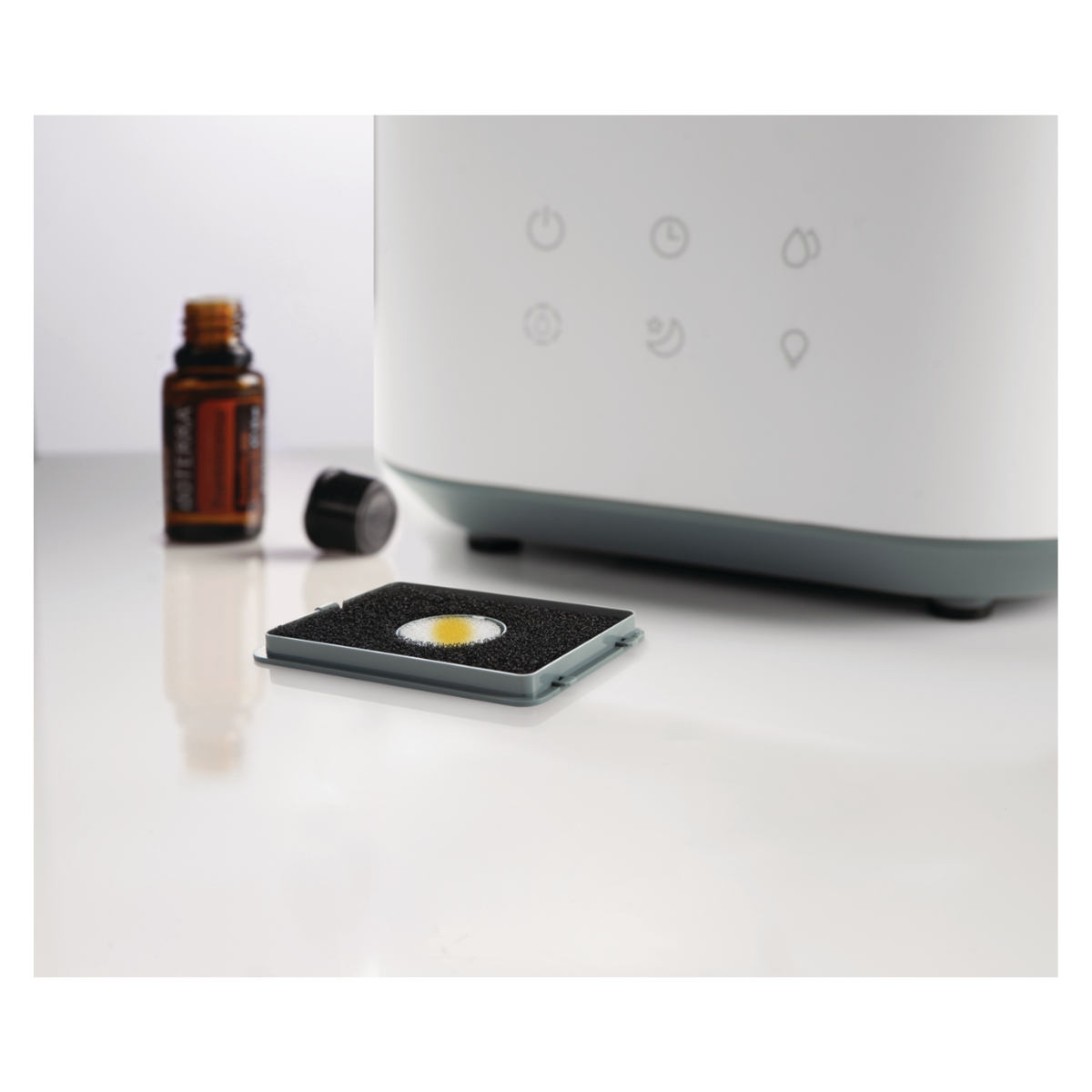 • Ултразвучна технологија - Невидливa, а сепак моќнa • Сад за мириси - Ароматерапија за релаксирачка атмосфера • 360° прилагодлив отвор за испуштање на пареа - Персонализирано испуштање на пареа
