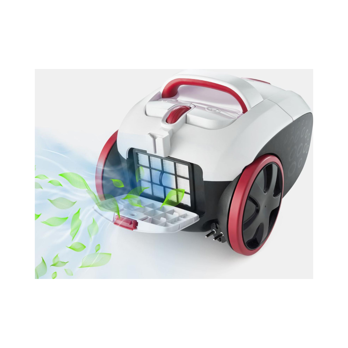 • HEPA филтрација – Повеќе свеж воздух • Иновативна контрола на тркалото – Лесна за користење • Лесно маневрирање – 360° тркала