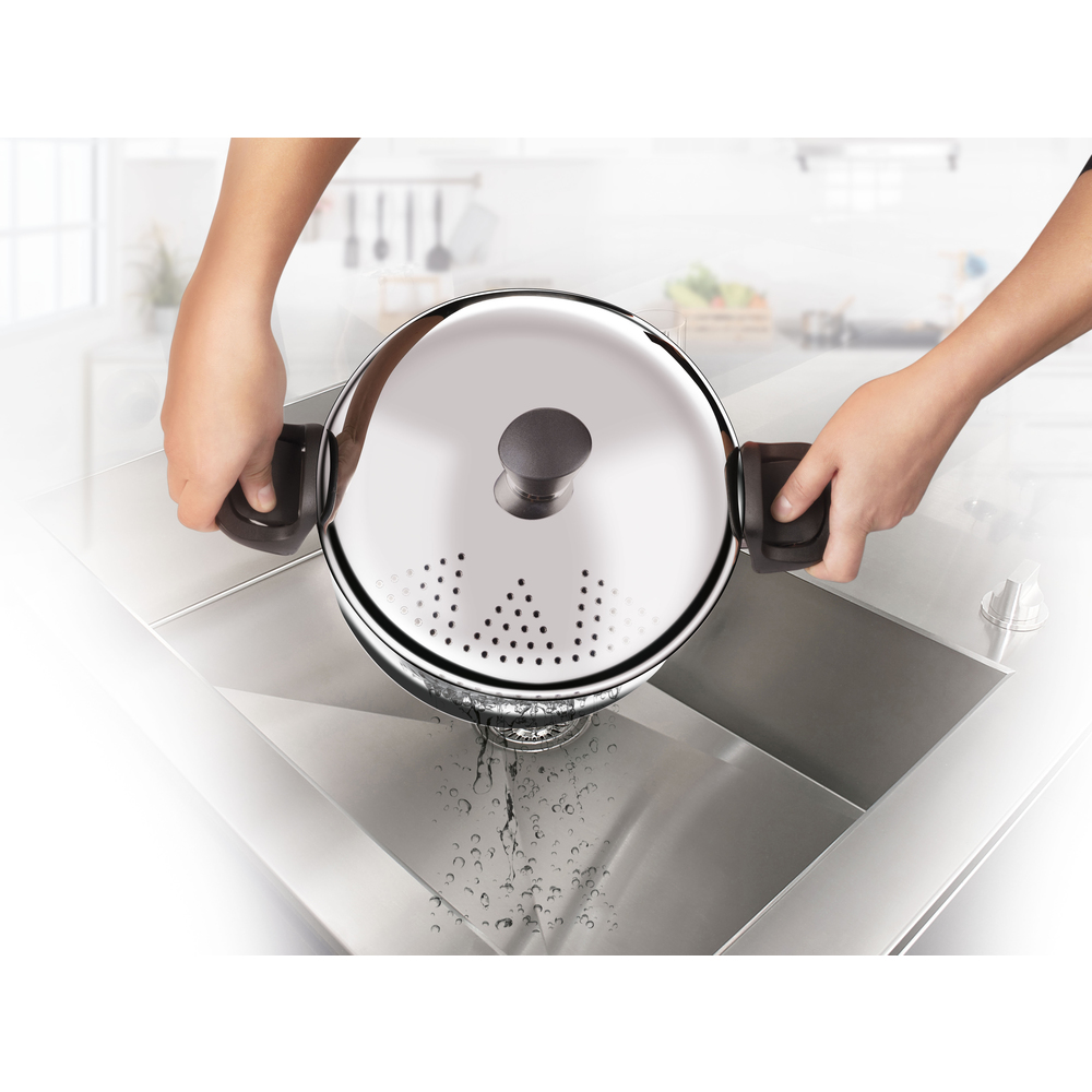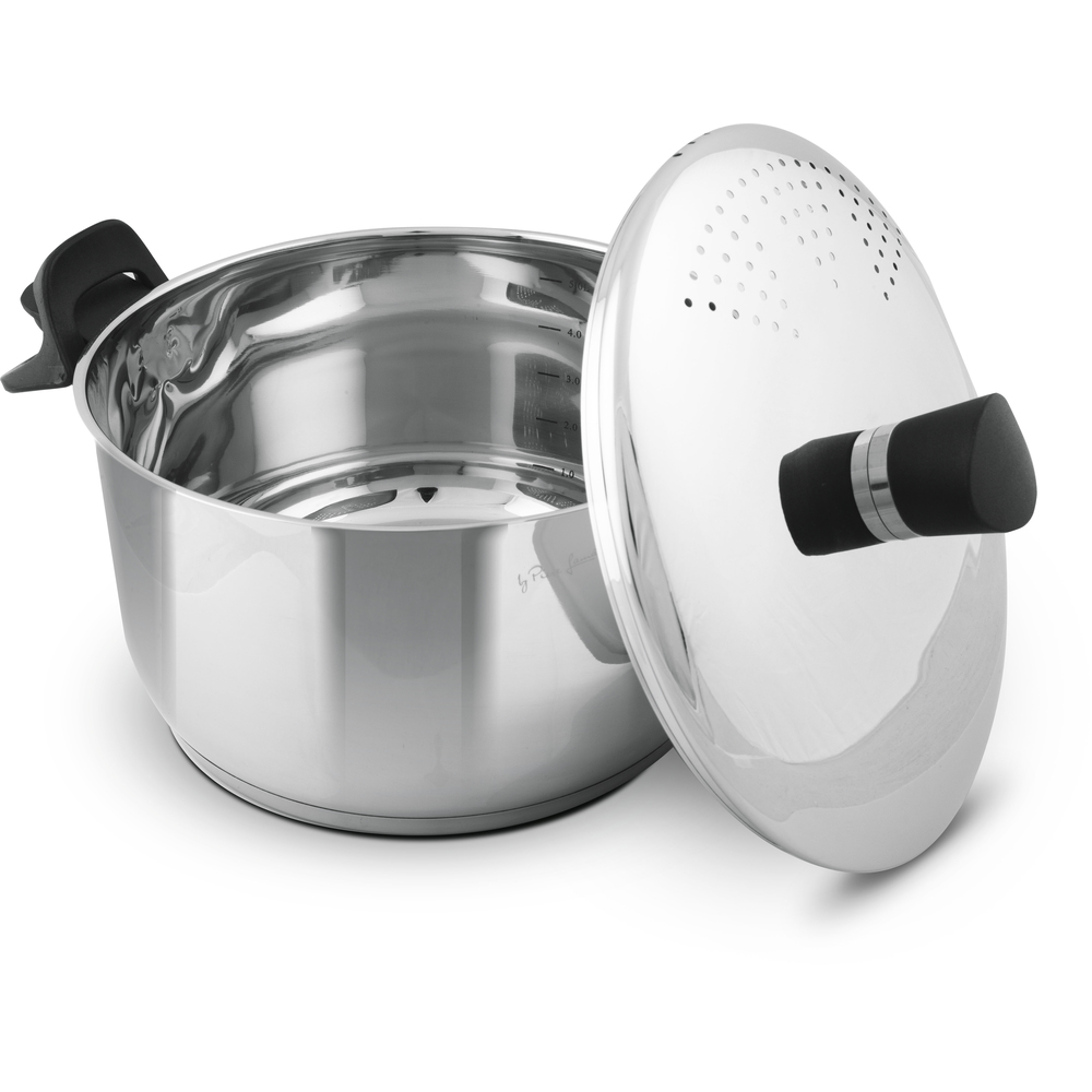• Тенџере со капак со дупчиња, за тестенини • Висококвалитетен сад од нерѓосувачки челик • Брзо готвење на база на акумулирање на топлината • Масивно дно • Здраво и брзо готвење • Бакелитни дршки • Лесно цедење на тестенините благодарение на дупчињата во капакот • Пречник / литража: – 24 cm / 5,8 l