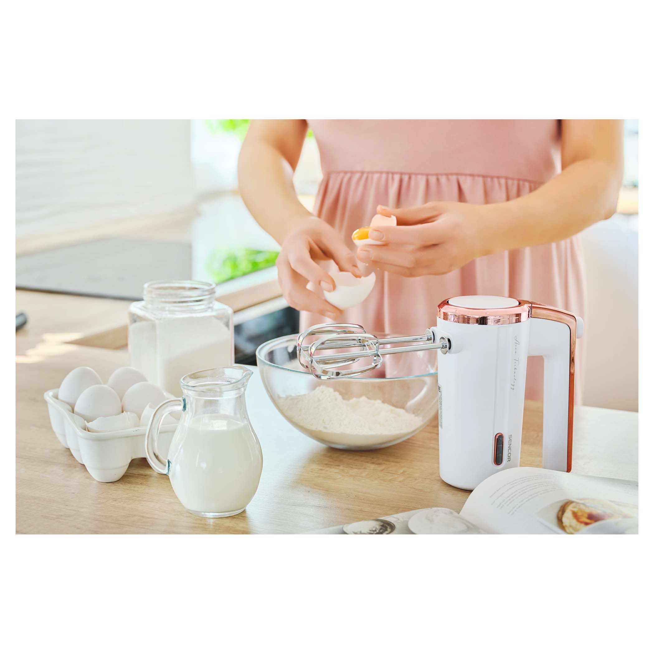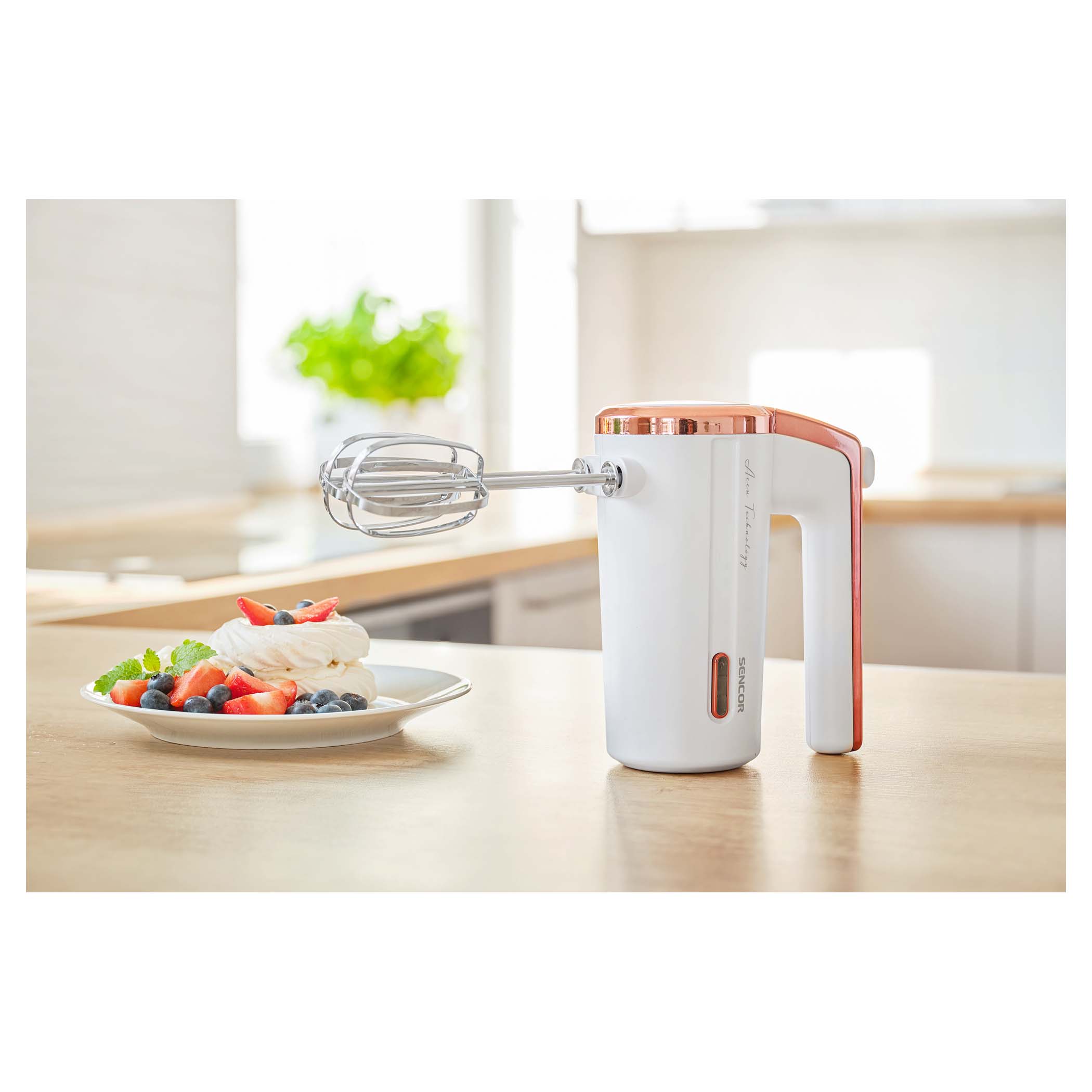 – Безжичен миксер со високи перформанси, работа на вградена батерија – Лесен за користење кога и да ви затреба – 3 брзини – 2 хромирани маталки